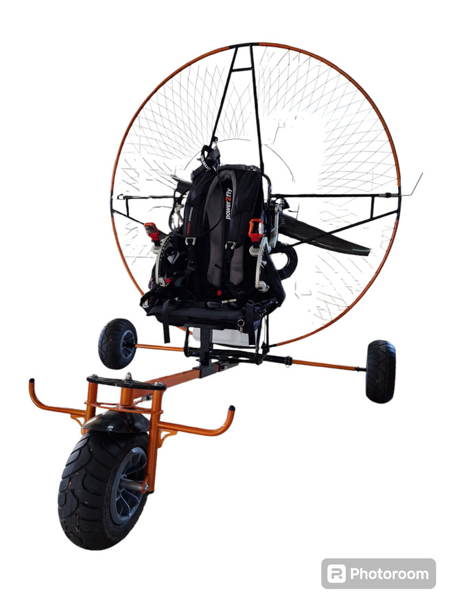 The Power2Fly LW Colibri Light is a lightweight trike weighing around 25 pounds, known for being able to fly straight on the paramotor foot launch CG settings. You read that right! Most likely you will not need to change your hang points from the foot launch to the Colibri Light flight. It is compatible with the Power2Fly Titan, RS, and Evo, and Explorer paramotors. Ideal for pilots who prefer not to run during takeoff, the Colibri Light is a popular choice for those seeking ease and convenience in their paramotoring experience.